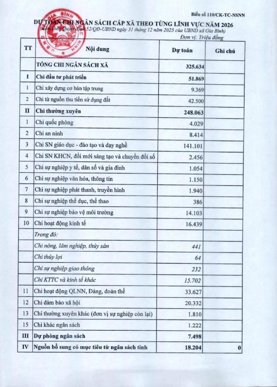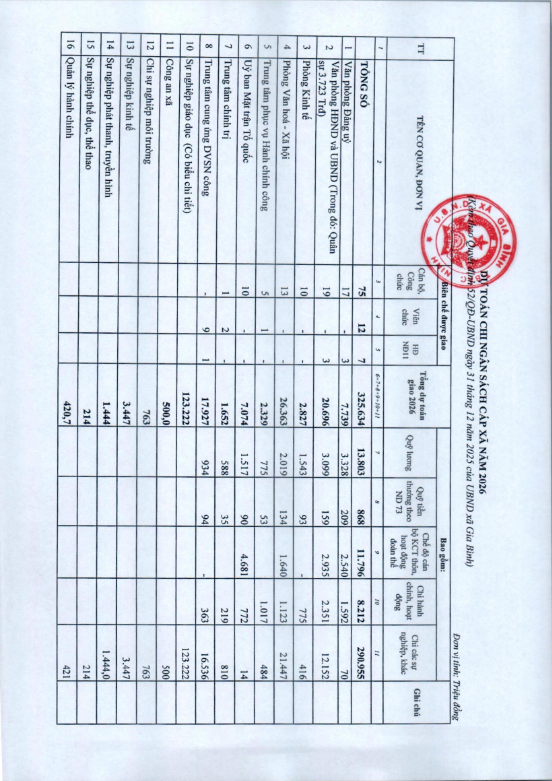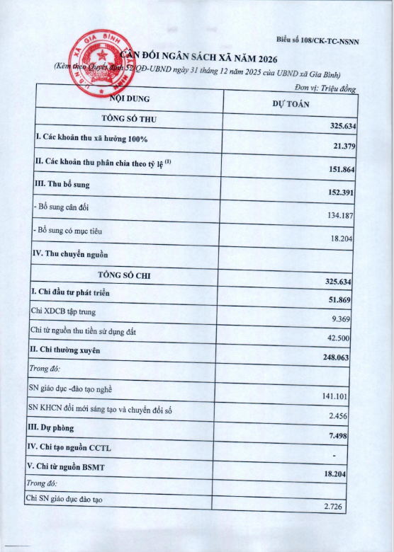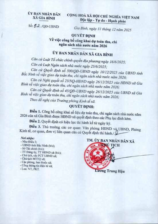 Quyết định về việc công bố, công khai dự toán thu, chi ngân sách Nhà nước năm 2026